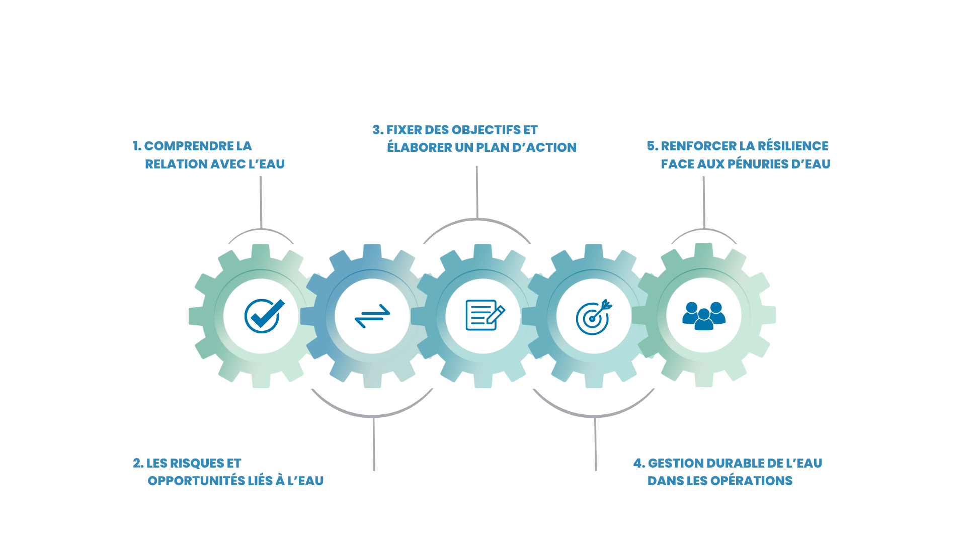 Nous commençons par analyser en profondeur votre interaction avec la ressource : consommation, usages, rejets, dépendances locales. Cette première étape permet de dresser une cartographie claire et factuelle de vos besoins et impacts.